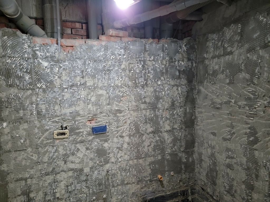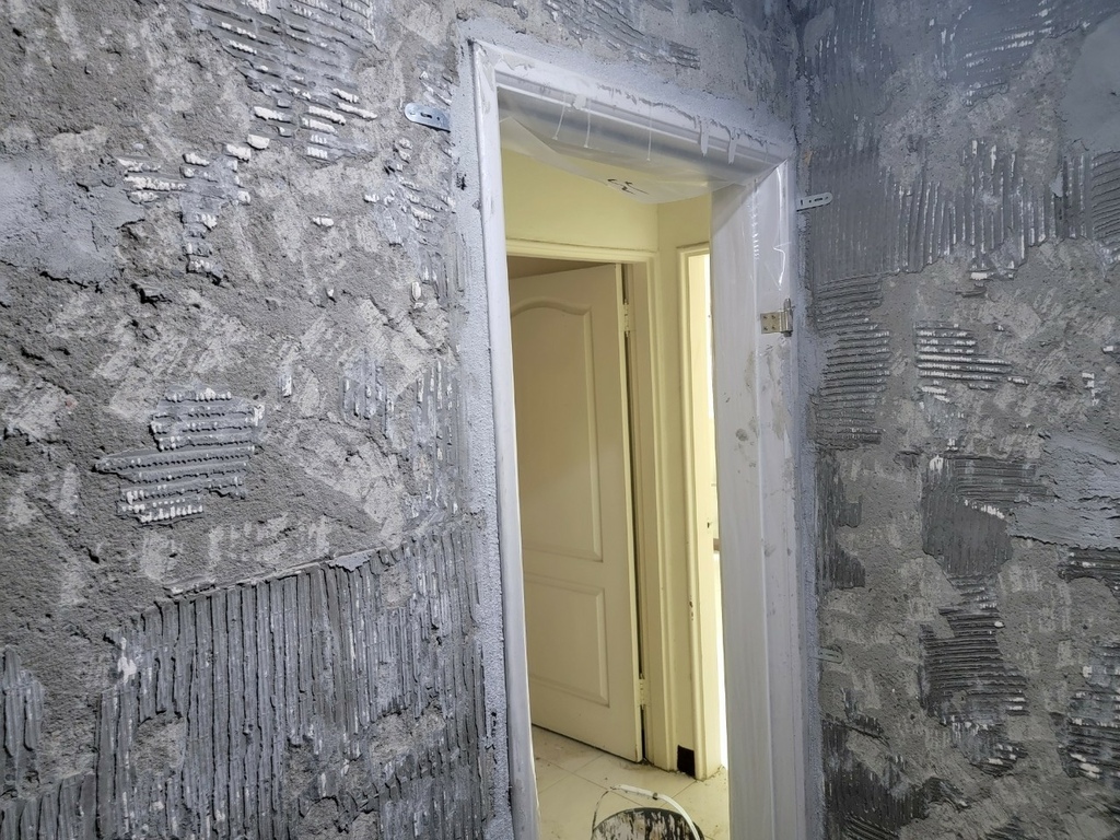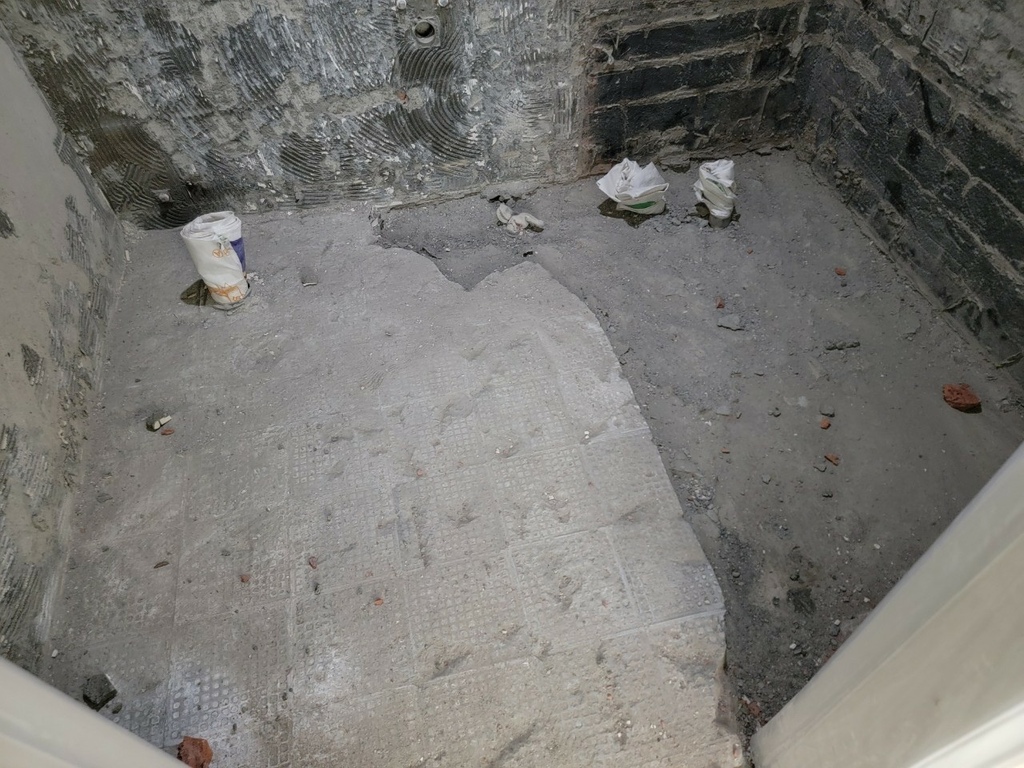 ▼磁磚全部敲掉重來!看著光禿禿的牆面,敲掉那些舊舊的磁磚真的超療癒~感覺霉運都被敲掉了一樣!