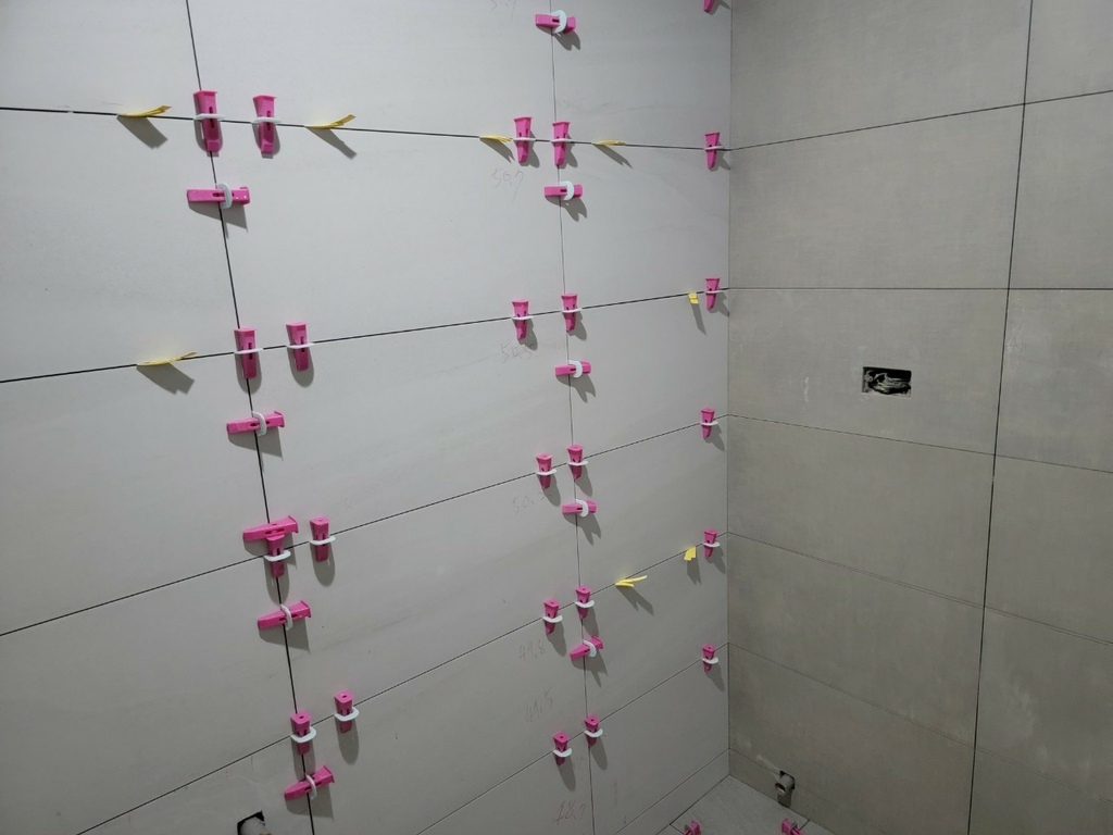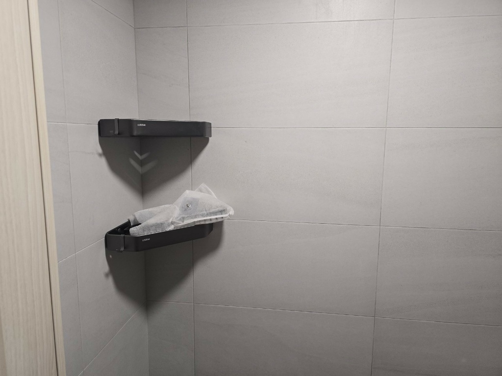 ▼再來就是選磁磚啦!我選了快乾、防滑的新磁磚,這樣洗完澡也不用擔心滑倒,而且質感超好,配上我選的黑白灰基調,整個高級感都出來了!