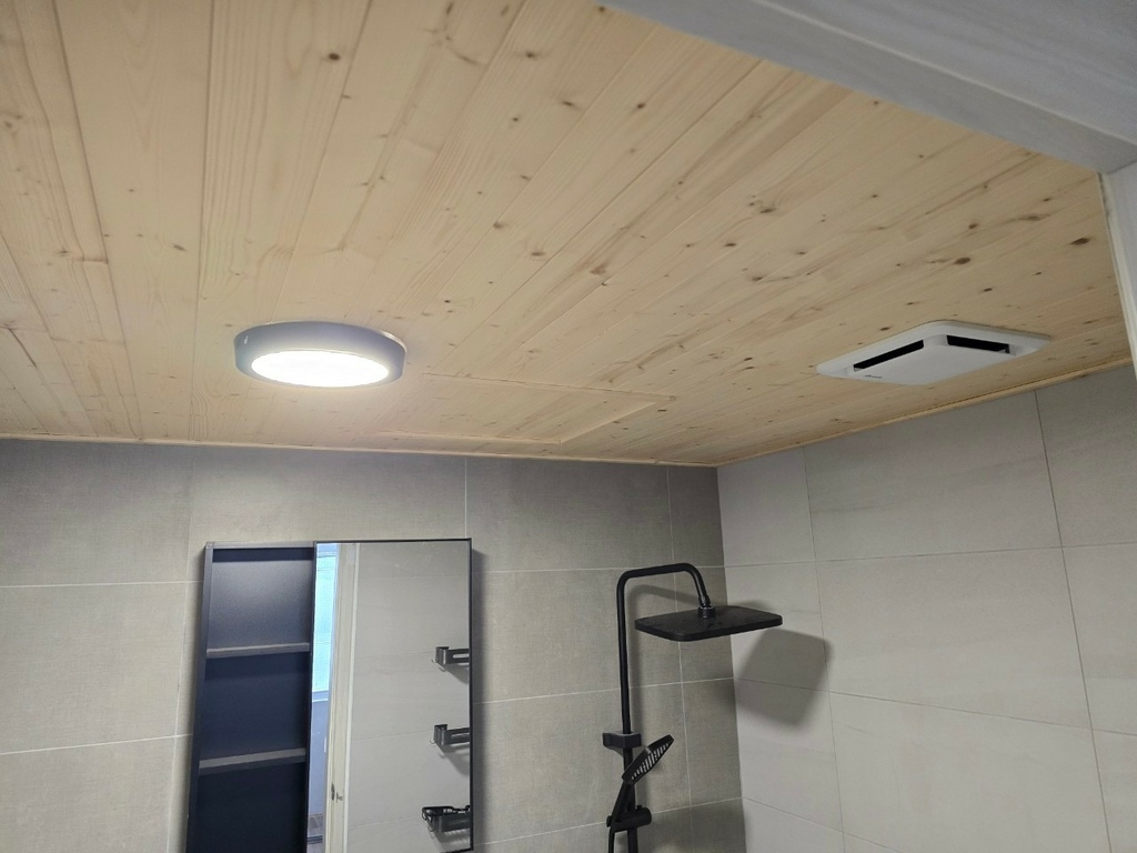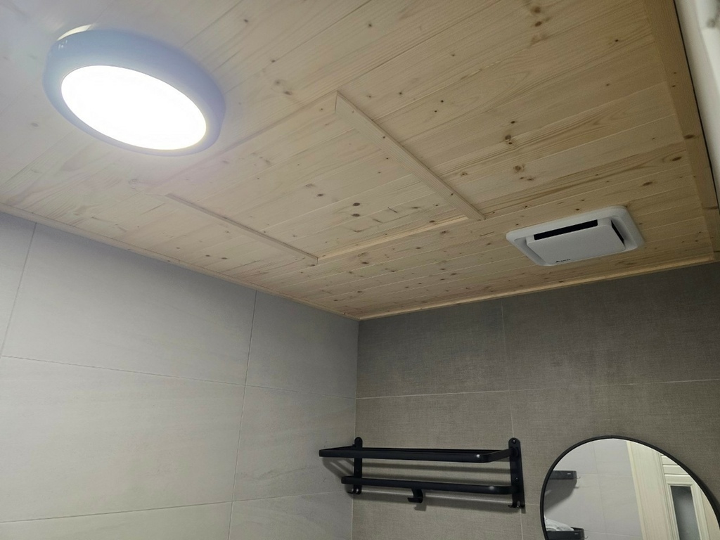 ▼廁所天花板我選了木紋PVC,沒想到效果意外的好!整個浴室空間瞬間變得好日系~