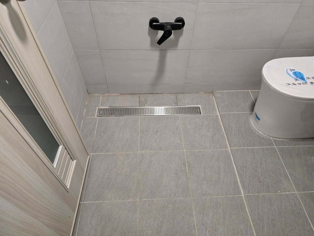 ▼最讓我滿意的是,胖匠師傅們洩水坡度抓得很好,現在排水超級順暢,不像以前水流都卡卡的,洗完澡地面很快就乾了,超讚!
